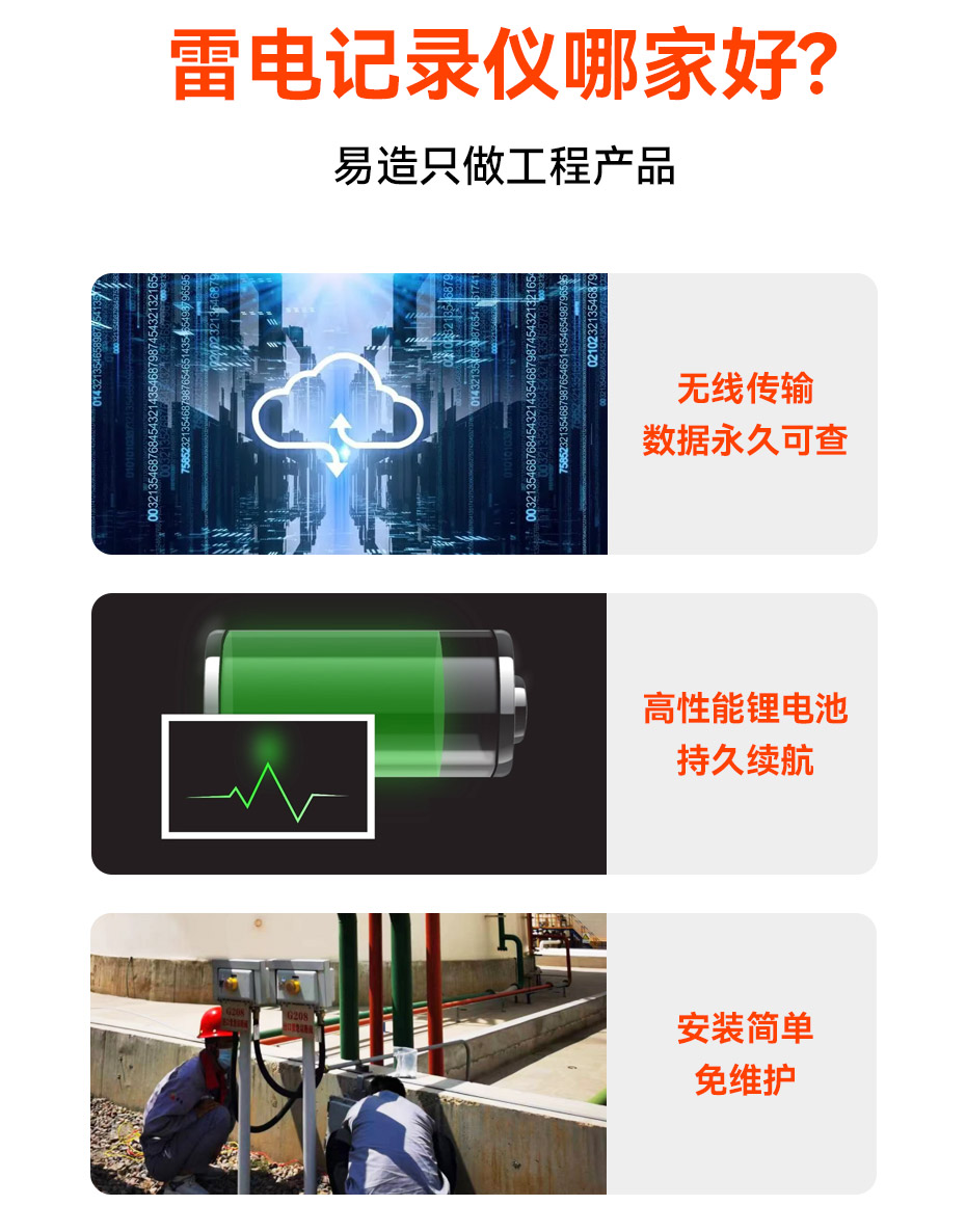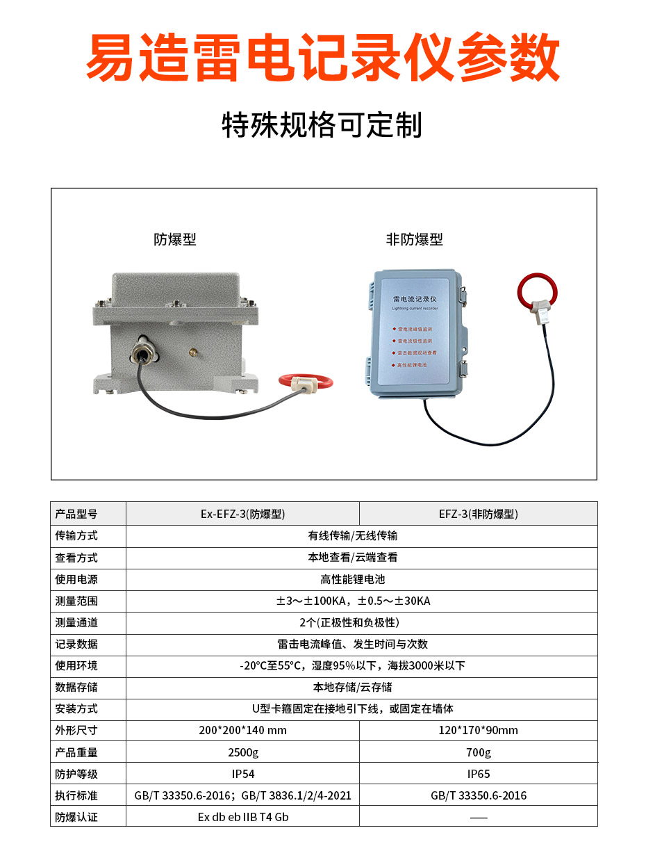 易造EFZ系列雷電流記錄儀具有防爆認證,體積小安裝方便、抗干擾能力強、可靠性高;雷電記錄儀通過無線通訊方式與軟件平臺實現(xiàn)聯(lián)動,數(shù)據自動保存、一鍵查詢;采用高性能鋰電池供電,可連續(xù)使用2-3年,維護方便。