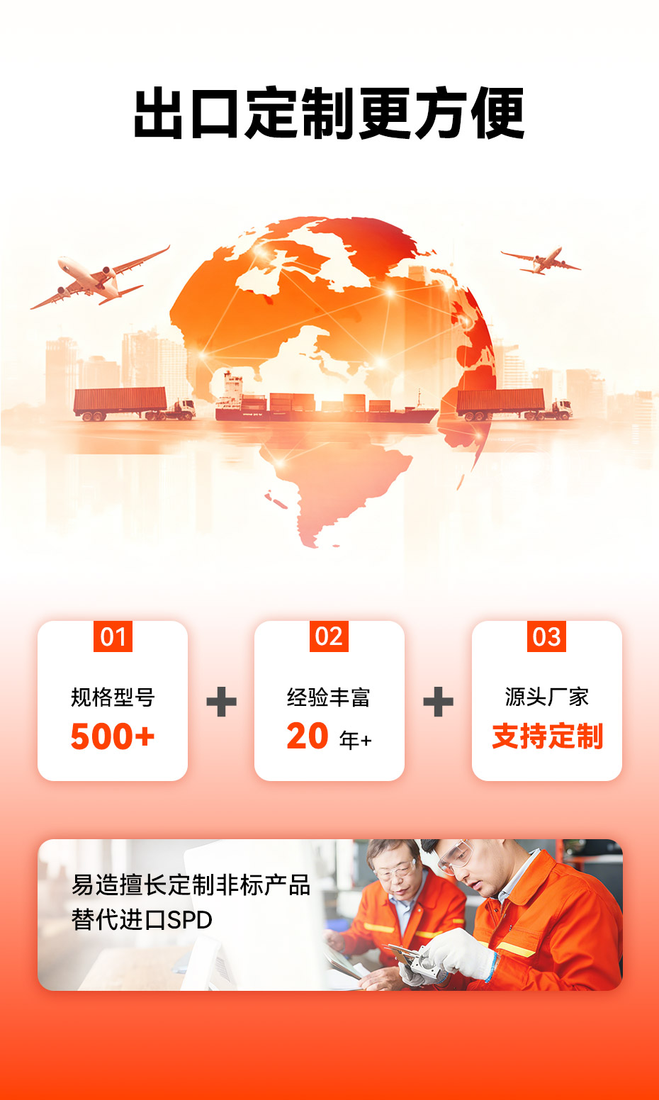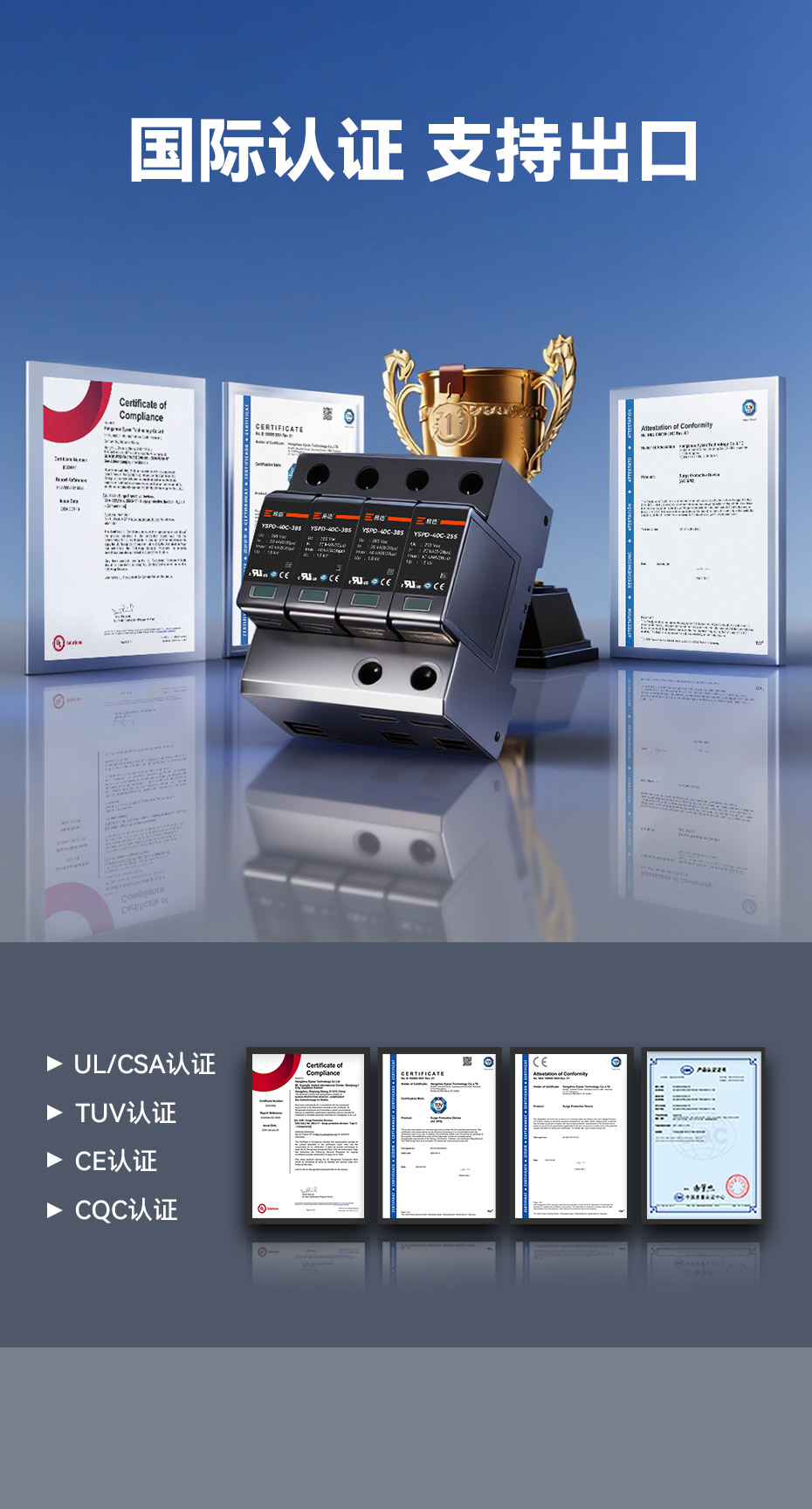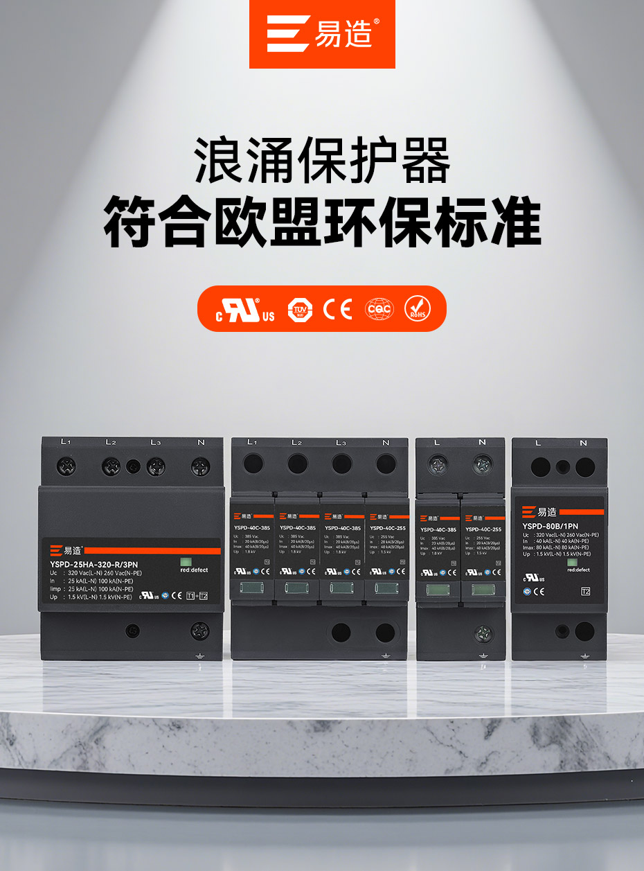 易造認證浪涌保護器規(guī)格型號齊全,滿足全球各個國電力系統(tǒng)單相和三相的防雷保護,符合全球市場的最高質(zhì)量和歐盟環(huán)保標(biāo)準,可替代進口品牌SPD,支持外貿(mào)出口定制。